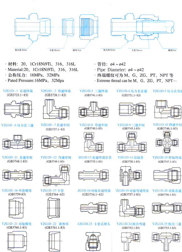 鋼制卡套式管接頭具有連接牢靠、耐壓能力高、密封性和反復(fù)性好、安裝檢修方便、工作安全可靠等特點(diǎn)。 性能規(guī)范 □ 制造標(biāo)準(zhǔn):GB3733.1~3765-83; □ 公稱壓力:25MPa.40MPa; □ 適用溫度:≤450℃; □ 適用介質(zhì):油、水、氣等非腐蝕性或有腐蝕性介質(zhì); □ 制造材料:20#,1Cr...