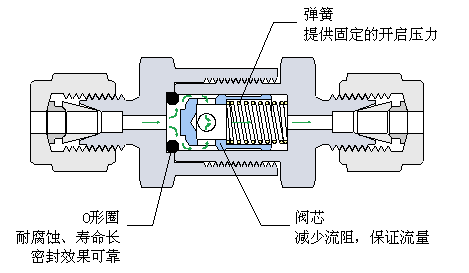 性能指標(biāo): 1.工作壓力20 Mpa 2.固定開(kāi)啟壓力均在0.2MPa以下(多種彈簧,可選擇開(kāi)啟壓力) 3.額定溫度200℃(僅用于氟橡膠配置) 4.正向流動(dòng)壓力損失小,反向截止密封性好,啟閉靈敏,工作時(shí)無(wú)振動(dòng)和噪聲。 結(jié)構(gòu)組成及材料: 結(jié)構(gòu)尺寸  ...